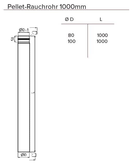 Pelletofenrauchrohr 1000 mm Ø 100 mm inkl. Gummidichtung
