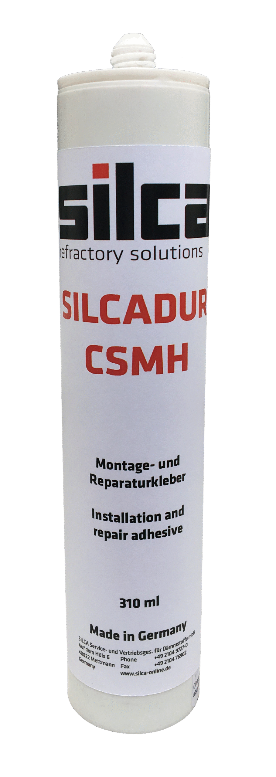 SILCADUR-CSMH ist ein Reparaturkleber auf anorganischer Basis mit einer Klassifikationstemperatur von 1.300 °C. Er dient zur Verklebung von dichten Calciumsilikaten oder anderen mineralischen Baustoffen untereinander, aber auch zur Ausbesserung von Rissen, Bruchstellen, etc. bei Schamotte oder Vermiculite Produkten innerhalb der Feuerstelle.