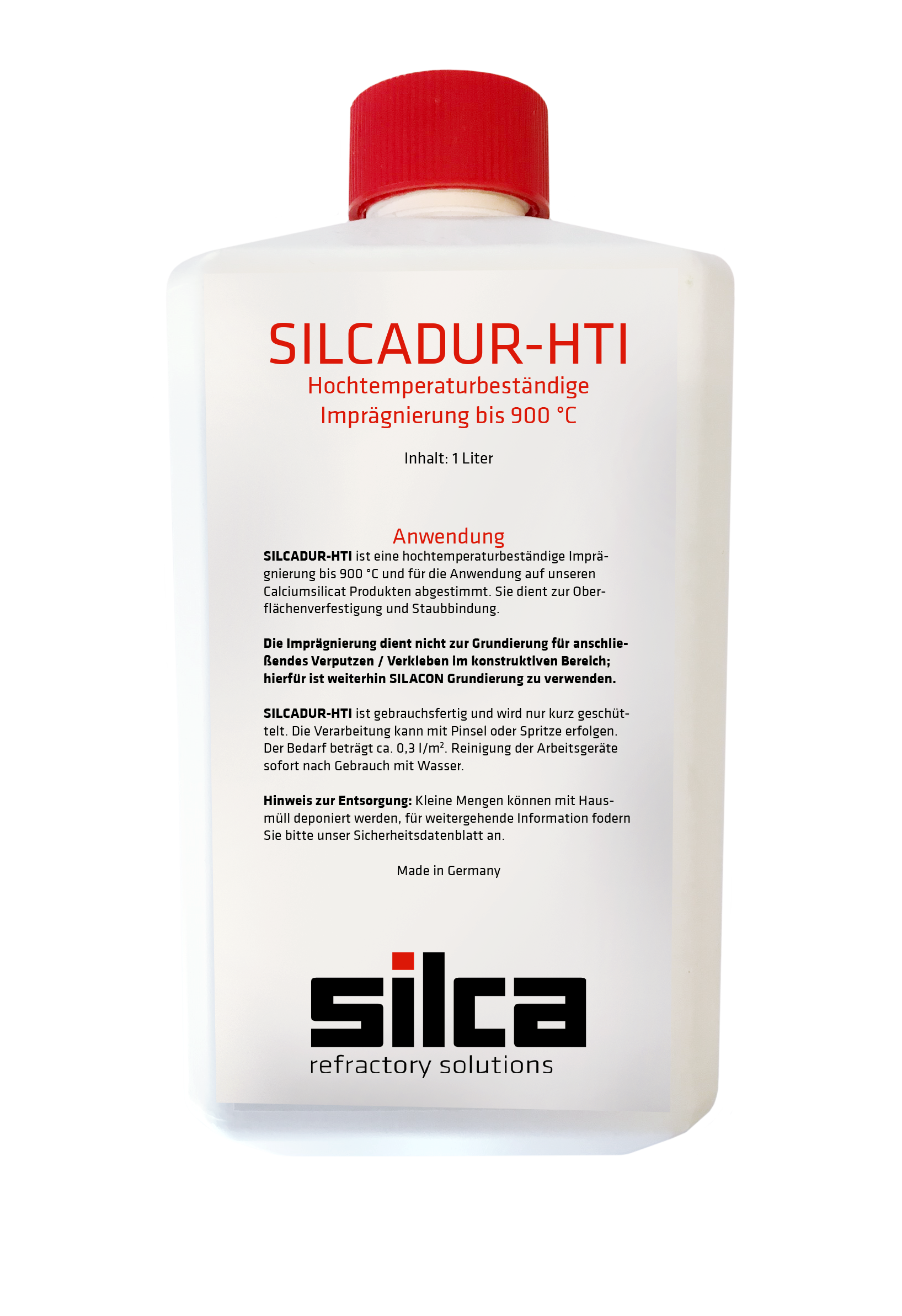 SILCADUR-HTI ist eine hochtemperaturbeständige Imprägnierung, abgestimmt auf die Anwendung auf unseren Calciumsilikat-Produkten. Sie dient zur Oberflächenverfestigung und Staubbindung. Sie ist anorganisch und geruchsneutral und eignet sich zum Beispiel als zusätzliche Oberflächenbehandlung der SILCA® 250KM Platten in der Heizkammer.