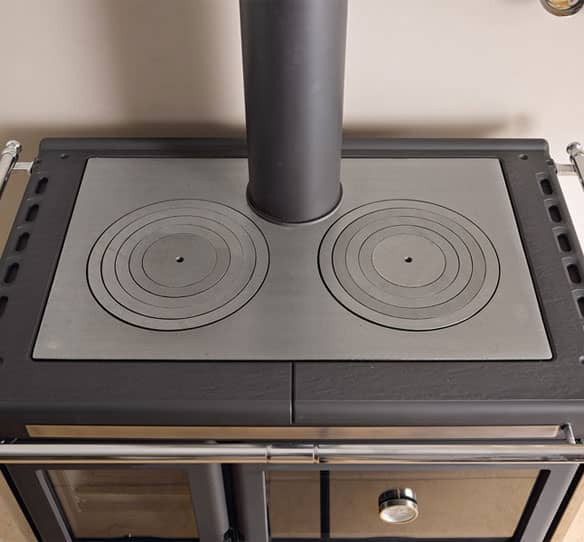 Innenbekleidung des Feuerraums aus Gusseisen und aus Schamottstein