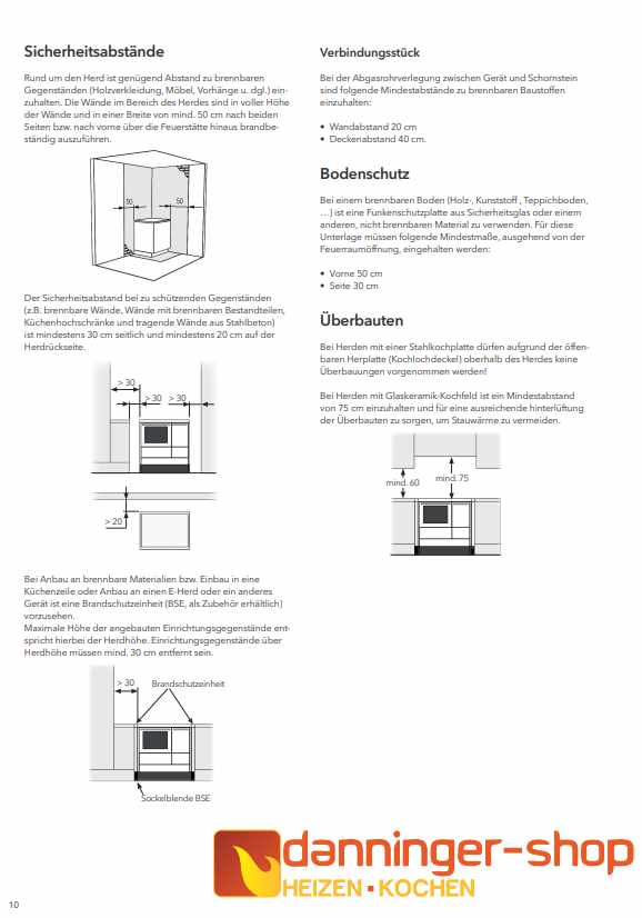 Halten Sie Rücksprache mit dem Schornsteinfeger Ihres Vertrauens – damit eine spätere Abnahme garantiert ist. Dieser kontrolliert vor dem Einbau der Feuerstelle Ihren Schornstein auf Verwendbarkeit. Beachten Sie grundsätzlich die Bedienungs- und Aufstellanleitungen des Ofens und wahren Sie die erforderlichen Sicherheitsabstände.