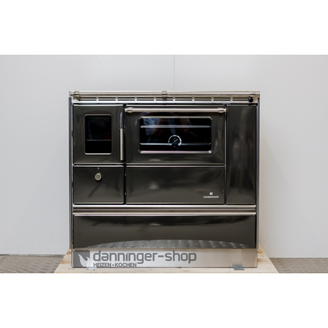 Tischherd Lohberger Rega 90 anthrazit metallic Anschluss Links Stahlplatte und mit Sichtfenster Special Sale
