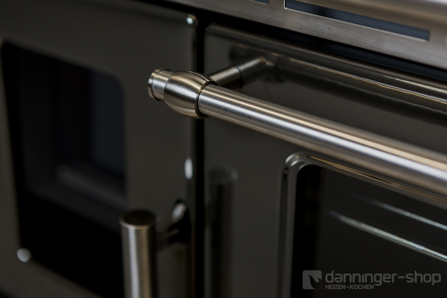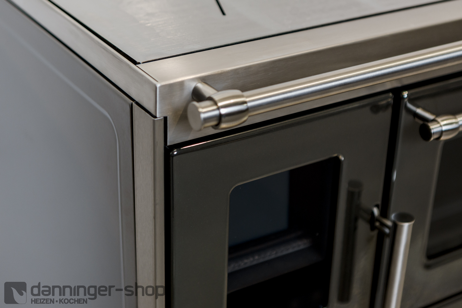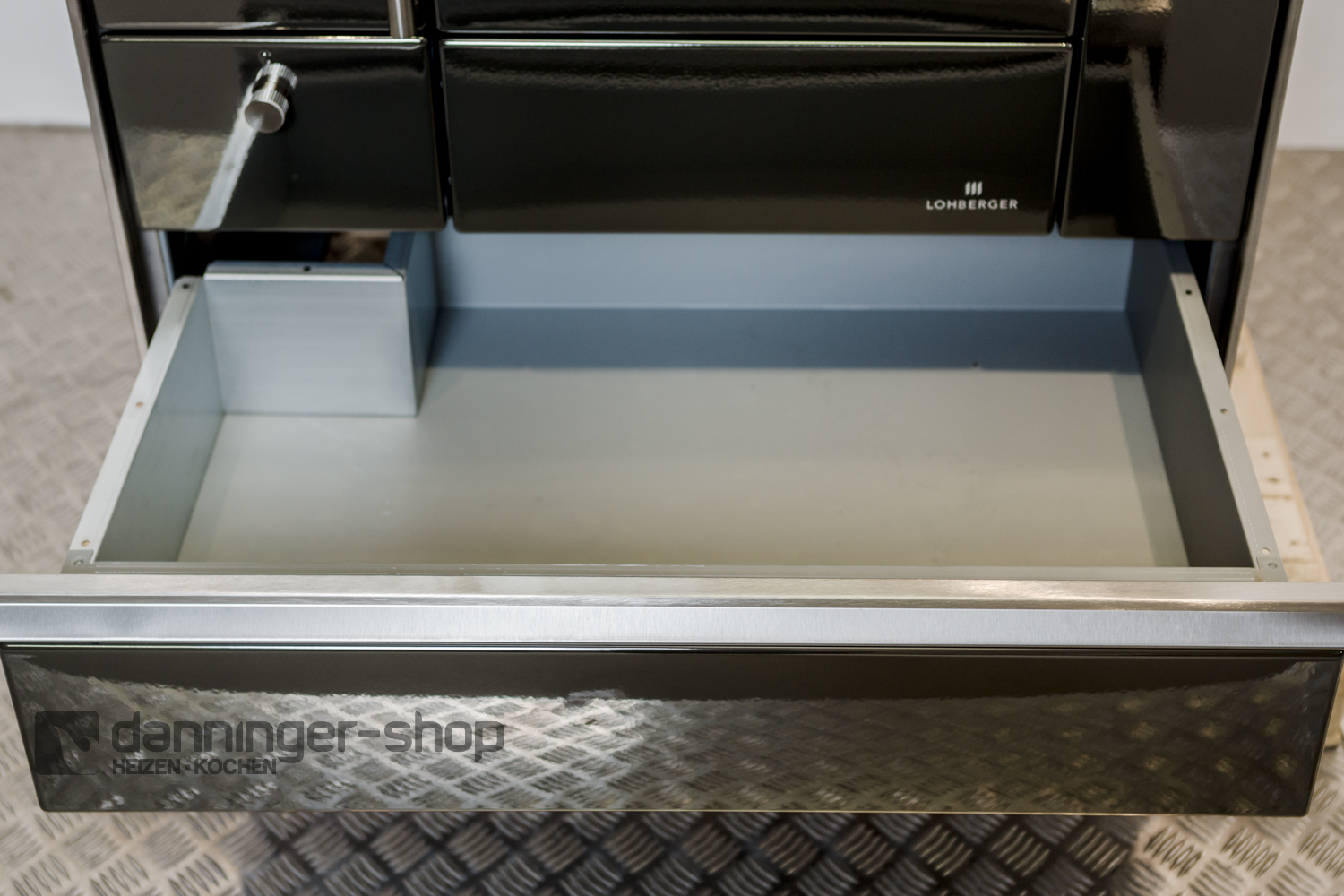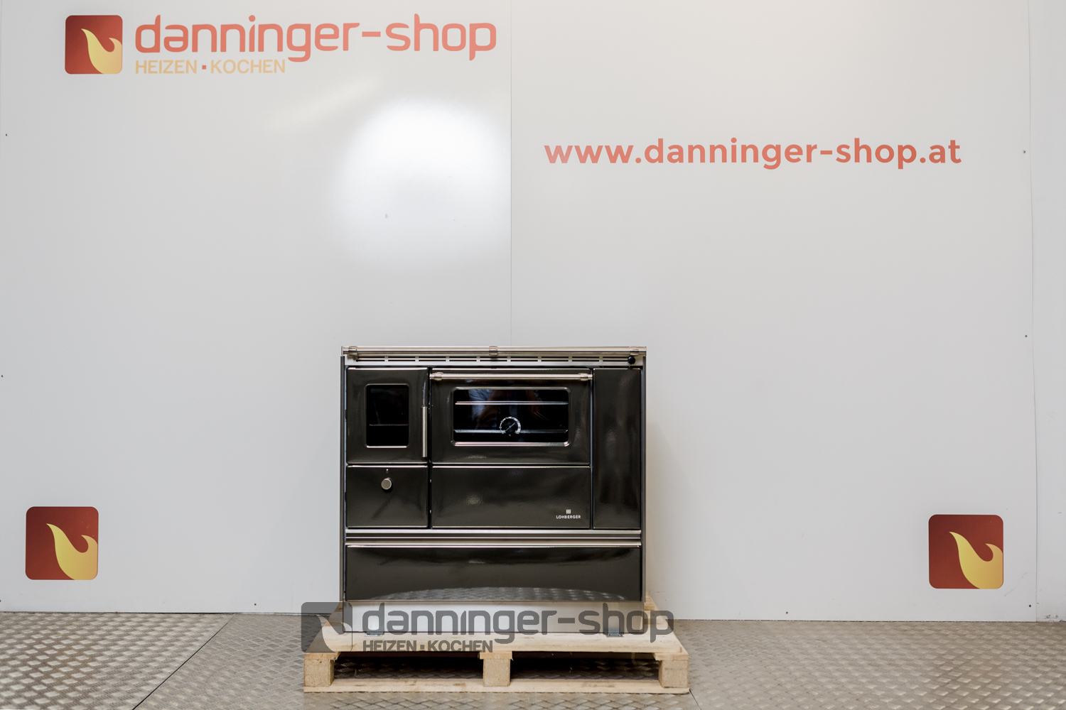 Tischherd Lohberger Rega 90 anthrazit metallic Anschluss Rechts Stahlplatte und mit Sichtfenster Special Sale
