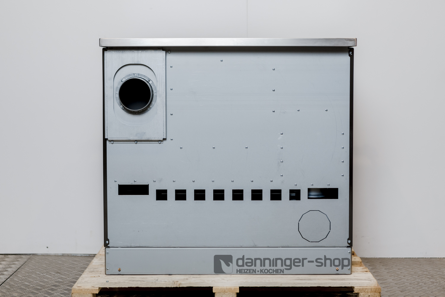 • Rauchrohranschlüsse 120 mm rechts oder links seitlich, hinten und bei Stahlplatte auch oben möglich