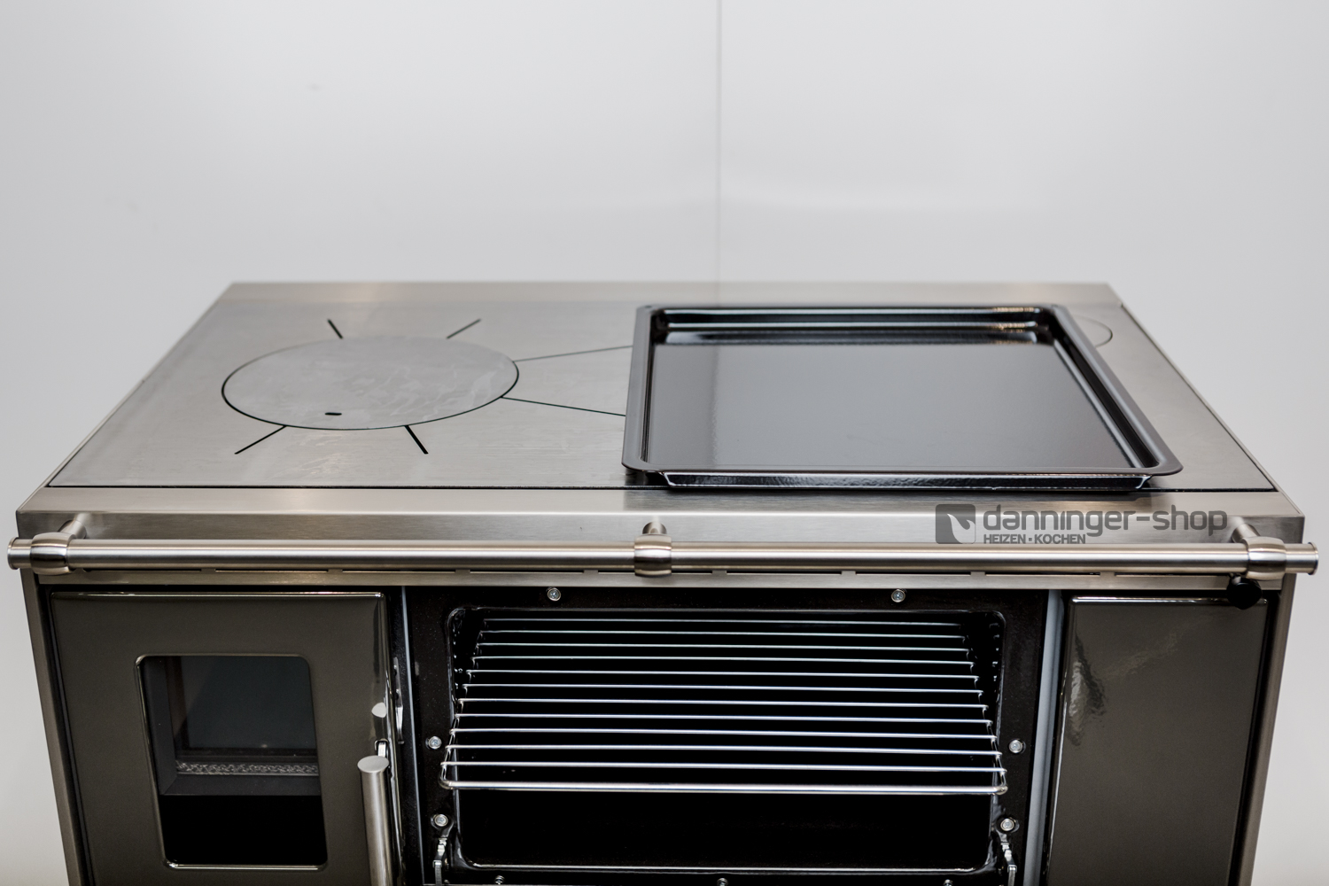 Bei Anschluss hinten oder seitlich können Sie jederzeit die Kochplatte wechseln. Im Sommer überzeugt ein Cerankochfeld durch die rasche Hitze. Im Winter wird gerne auf der Stahlplatte gekocht und Speisen können warmgehalten werden.