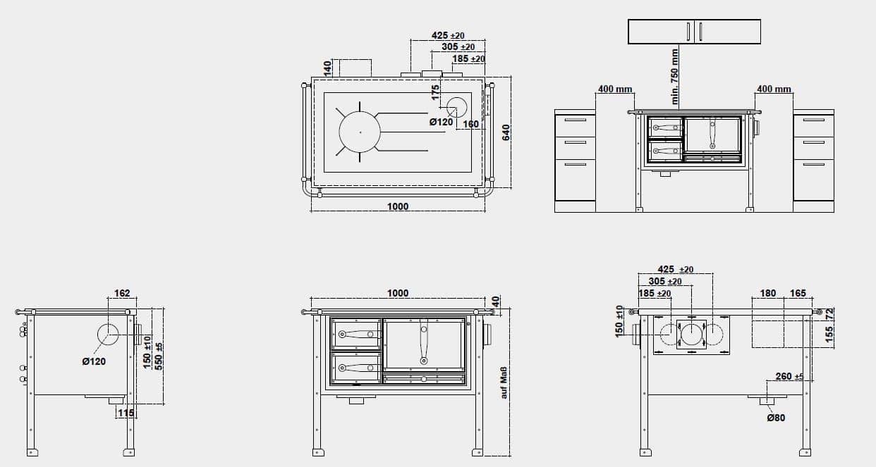 Gerätemaße (B x T x H): 1000 x 640 x 850mm
