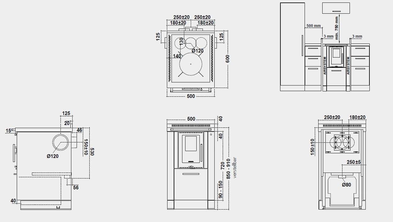 Gerätemaße (B x T x H): 500 x 600 x 850 – 910mm