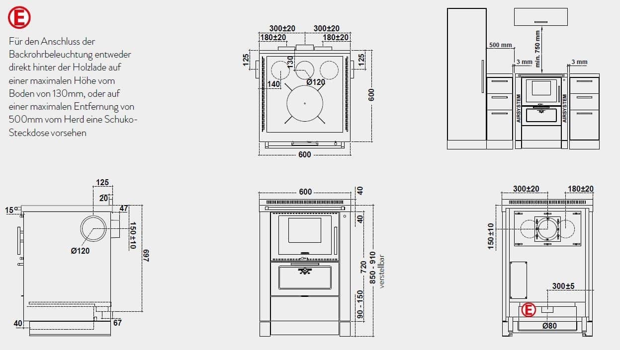 Halten Sie Rücksprache mit dem Schornsteinfeger Ihres Vertrauens – damit eine spätere Abnahme garantiert ist. Dieser kontrolliert vor dem Einbau der Feuerstelle Ihren Schornstein auf Verwendbarkeit. Beachten Sie grundsätzlich die Bedienungs- und Aufstellanleitungen des Ofens und wahren Sie die erforderlichen Sicherheitsabstände.