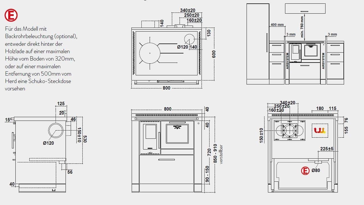 Gerätemaße (B x T x H): 800 x 600 x 850 – 910mm