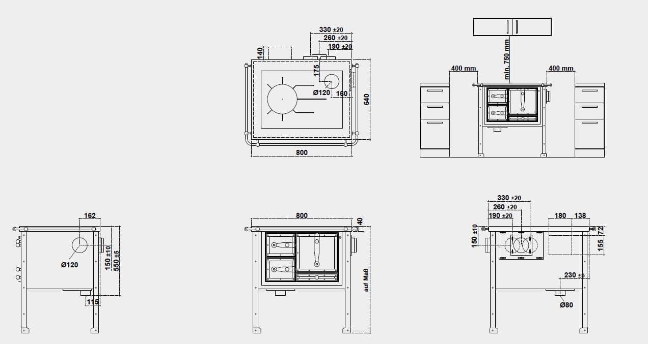 Wählen Sie eine Herdhöhe zwischen 851 mm – 920 mm. (Ansonsten Standardhöhe 850 mm). Bitte geben Sie Ihre gewünschte Herdhöhe an