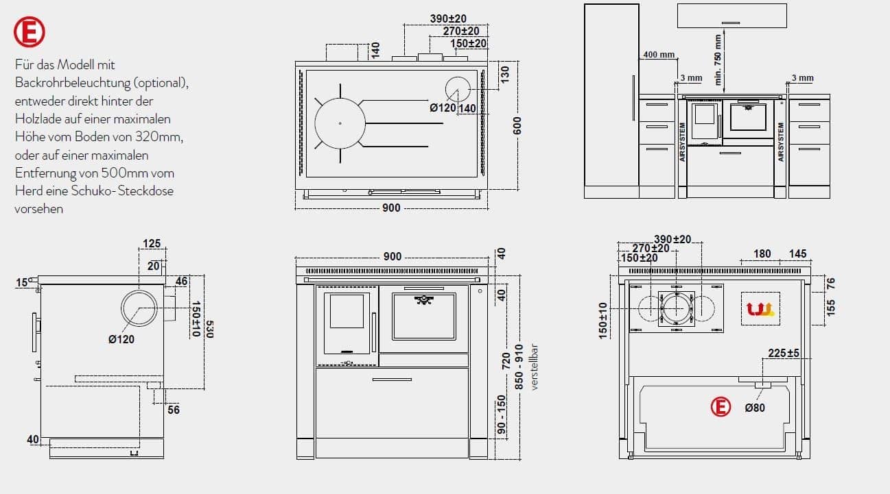 Gerätemaße (B x T x H): 900 x 600 x 850 – 910mm