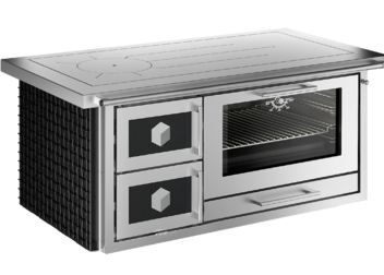 Alle Bausatzherde von Pertinger können mit einer Durchheizklappe für einen Nachheizkasten ausgestattet werden. Der Sockel kann aus einem gemauerten Bogen oder mit einer Schublade aus Stahlblech in gewünschter Form gefertigt werden.