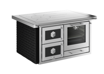Alle Bausatzherde von Pertinger können mit einer Durchheizklappe für einen Nachheizkasten ausgestattet werden. Der Sockel kann aus einem gemauerten Bogen oder mit einer Schublade aus Stahlblech in gewünschter Form gefertigt werden.