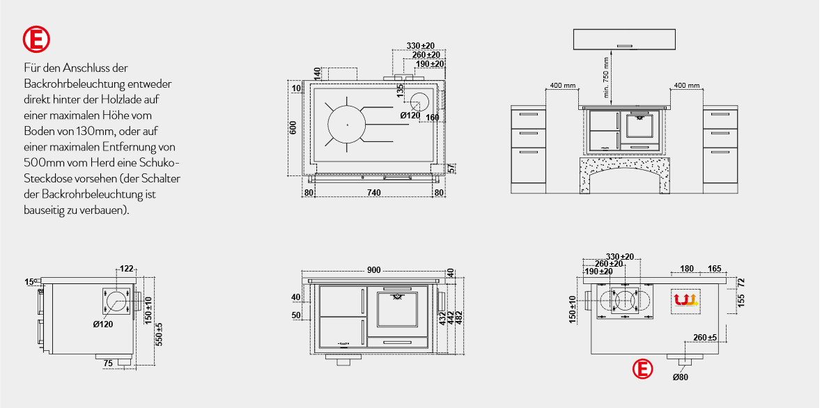 Halten Sie Rücksprache mit dem Schornsteinfeger Ihres Vertrauens – damit eine spätere Abnahme garantiert ist. Dieser kontrolliert vor dem Einbau der Feuerstelle Ihren Schornstein auf Verwendbarkeit. Beachten Sie grundsätzlich die Bedienungs- und Aufstellanleitungen des Ofens und wahren Sie die erforderlichen Sicherheitsabstände.