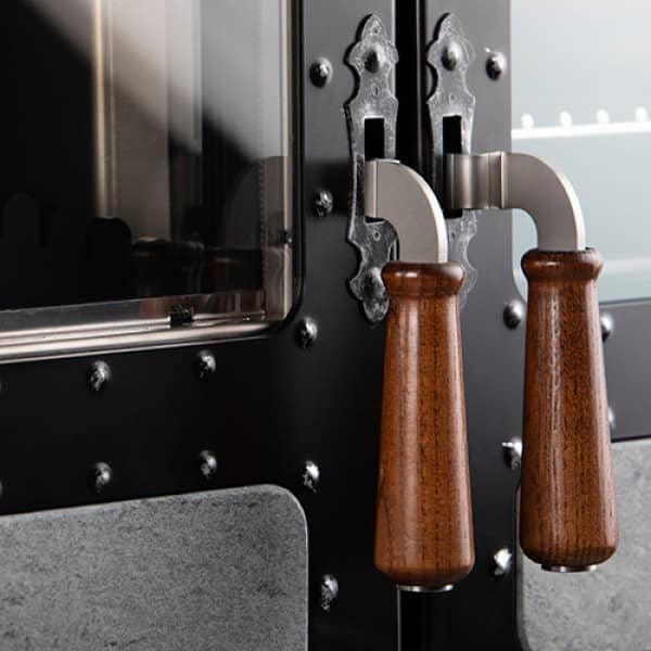 Ein nostalgischer Zentralheizungsherd mit modernem Kern. Für die Modelle dieser Serie werden hochwertige Materialien ausgewählt. Die von Meisterhand handangefertigte Keramik aus Bassano del Grappa, die edlen Holzgriffe und die speziell, manuell bearbeiteten Türen mit Nieten erinnern an bereits vergangene Tage.