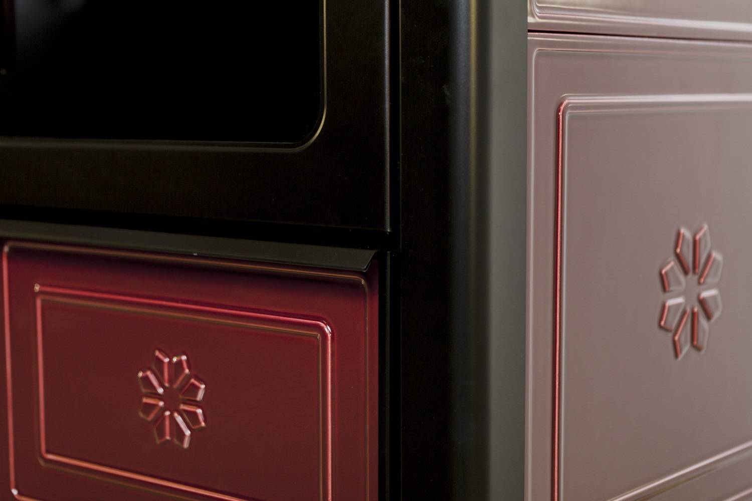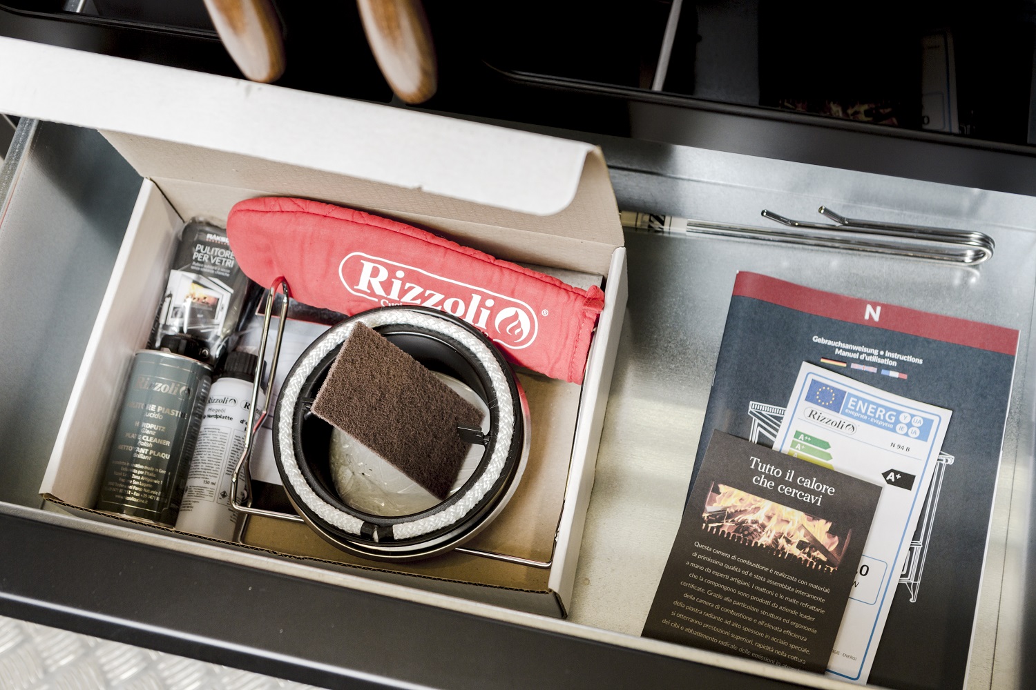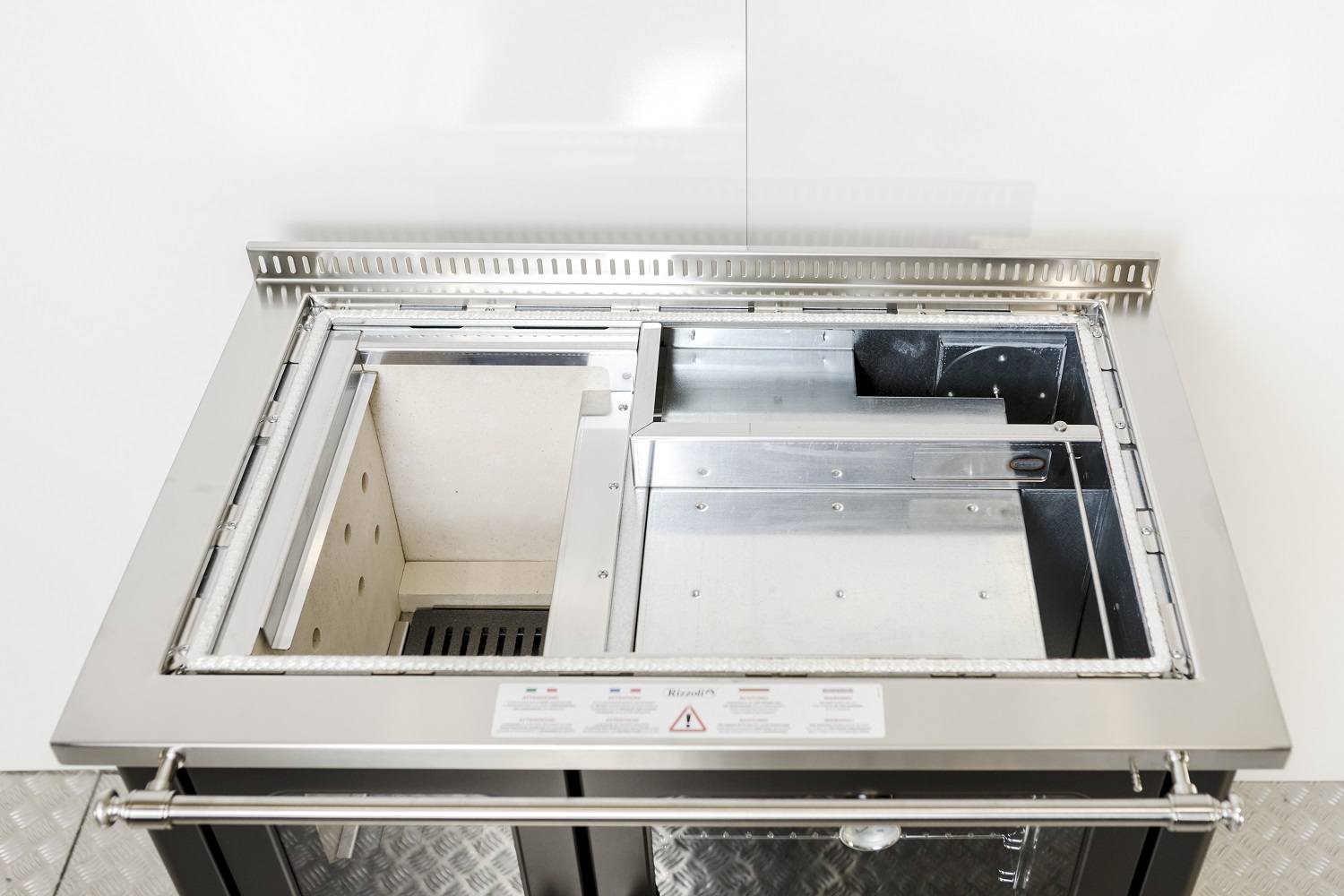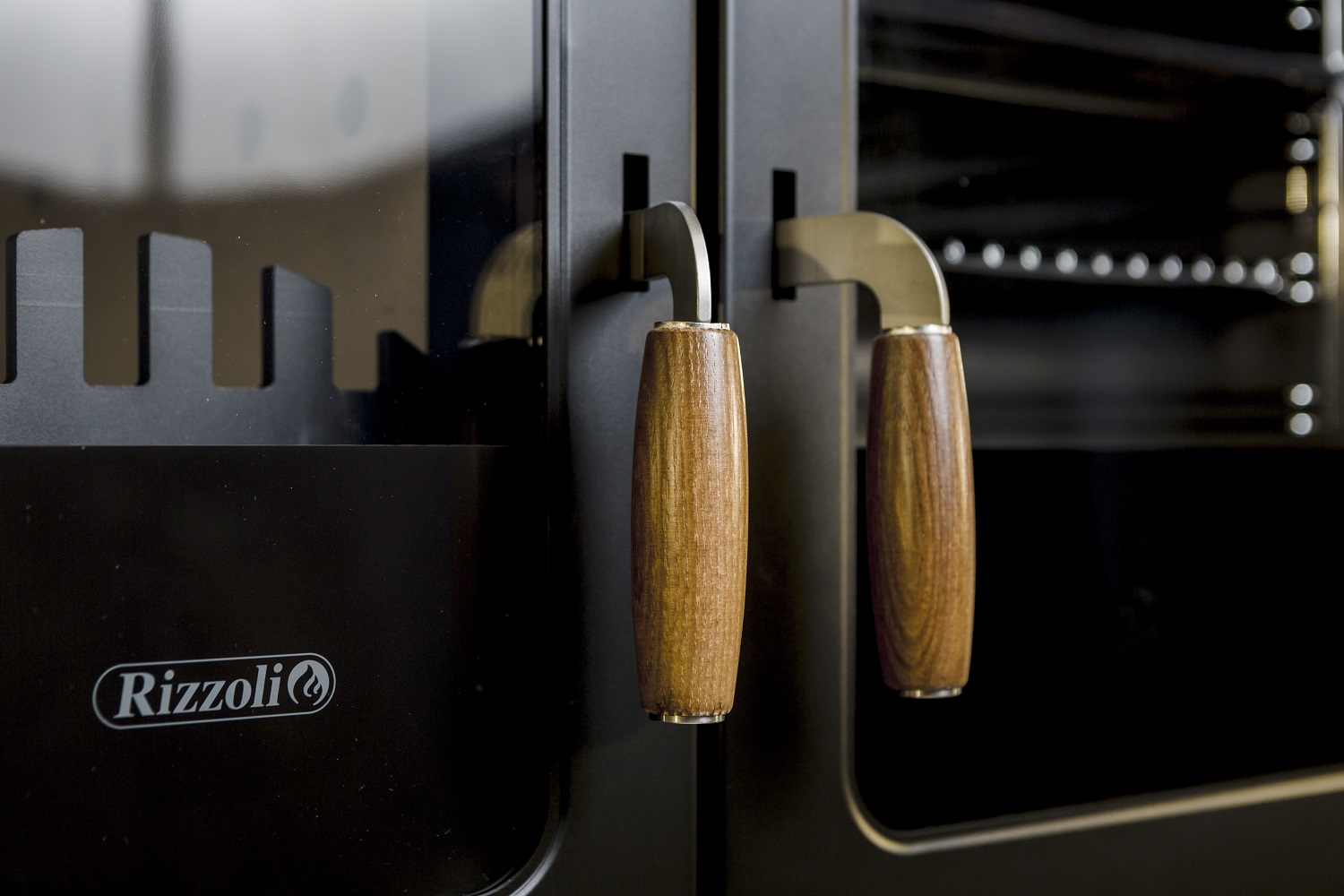 Die neue Serie N kennzeichnet sich durch den Einsatz der besten verfügbaren Techniken und die ausgewählten Rohstoffe. Der hochwertige Stahl, die Brennkammer aus zertifiziertem feuerfestem Material und die spezielle Stahl-Herdplatte-Elemente, die die Produkte von Rizzoli seit jeher auszeichnen – harmonieren perfekt mit der von Meisterhand handangefertigten Keramik-Verkleidung aus Bassano del Grappa (Italien), dem Serpentinstein und den edlen Griffen aus Nussbaumholz.