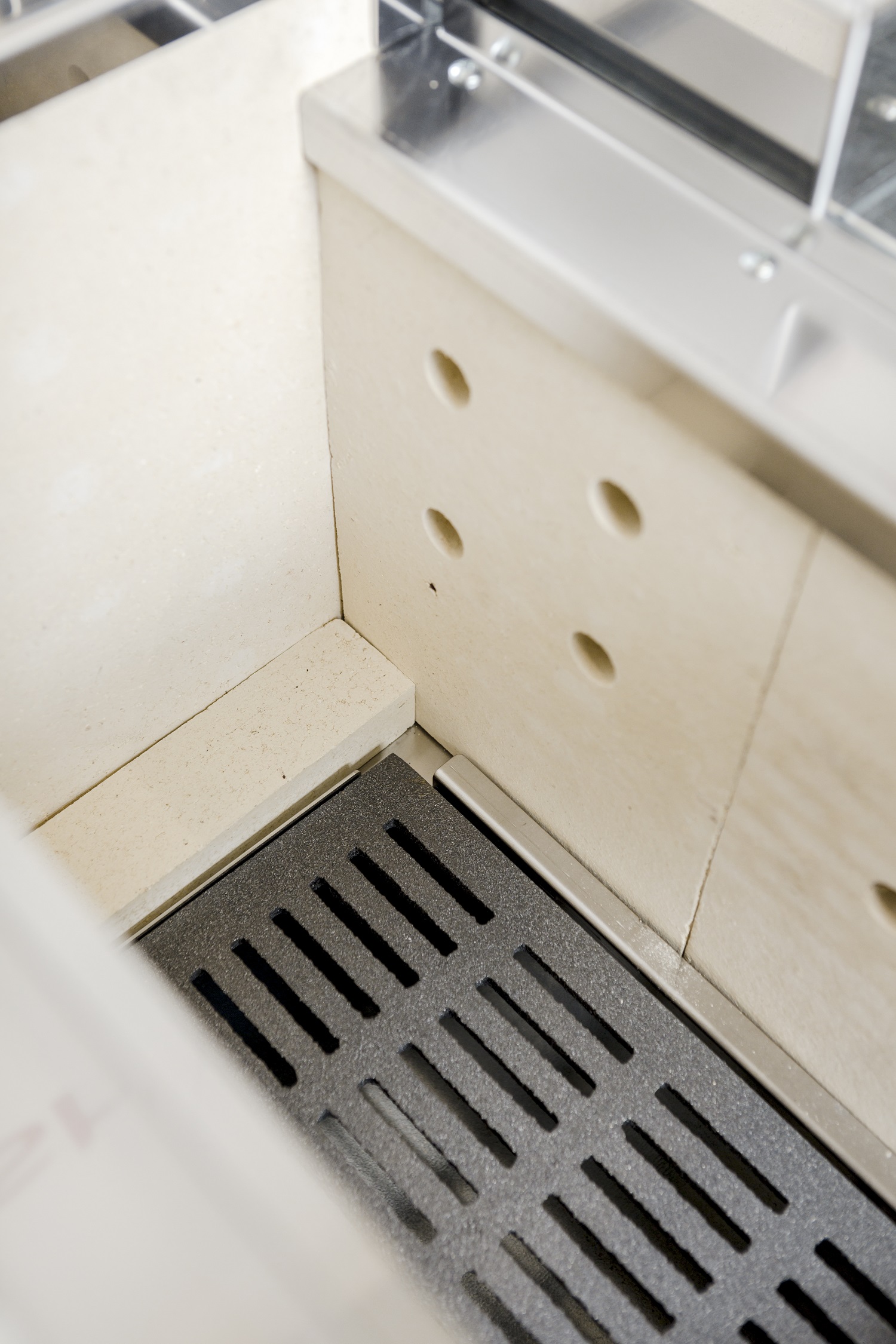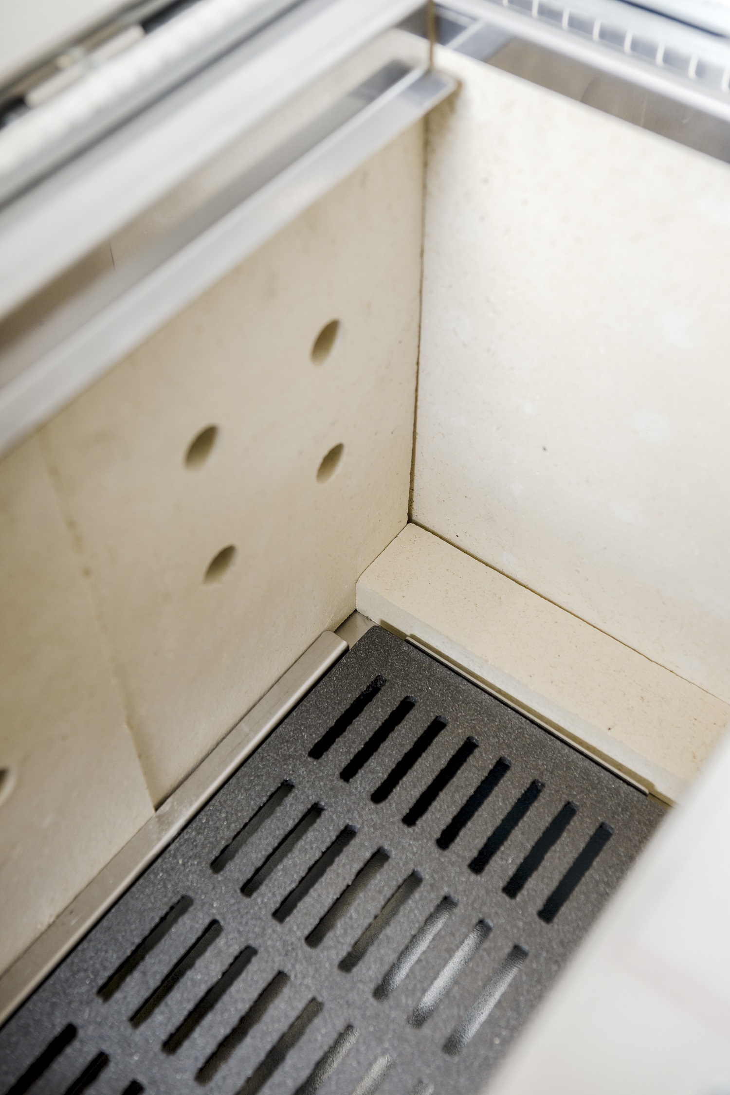 Das Geheimnis des Edelstahl-Backofens der neuen Serie N liegt in dem sorgfältig geplantem Rauchgaszug mit einer großen Menge an feuerfestem Material, wodurch eine gleichmäßige Temperatur von bis zu 350°C ermöglicht und der Backofen in Rekordzeit auf Temperatur gebracht wird. Der spezielle Rauchgaszug mit einer Länge von 270 cm, welcher den gesamten Backofen von allen Seiten (auch von hinten) umgibt, garantiert ein perfektes Backen und, aufgrund der erhöhten Wärmespeicherung im Inneren des Backofens, einen höheren Wirkungsgrad.