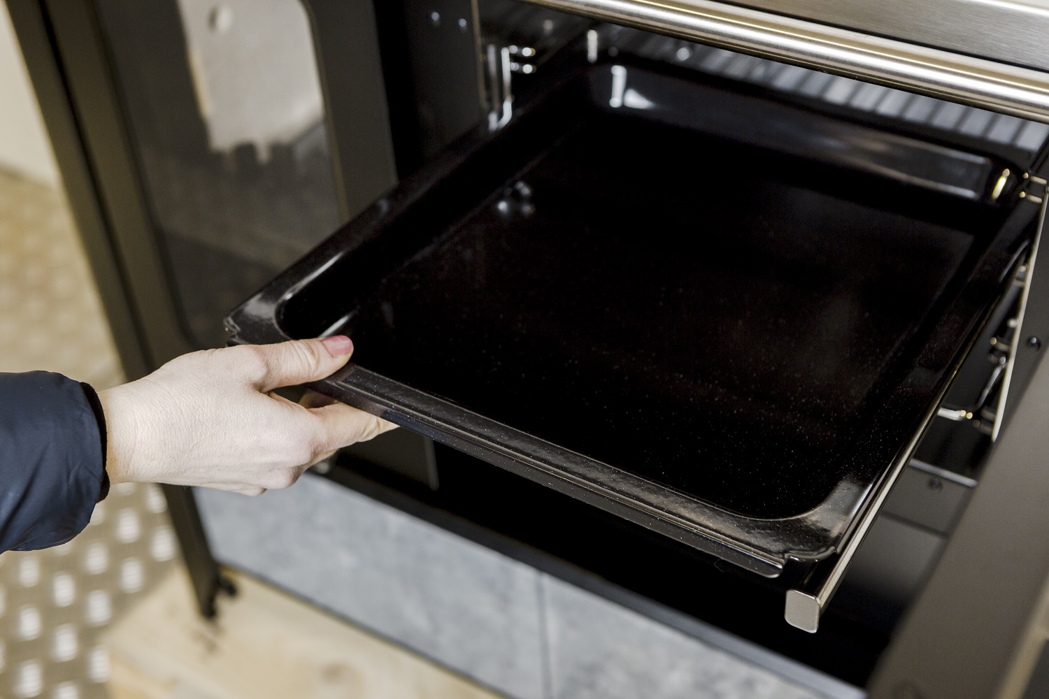 • Edelstahl-Backofen mit Grillrost und Backblech auf Teleskopschienen