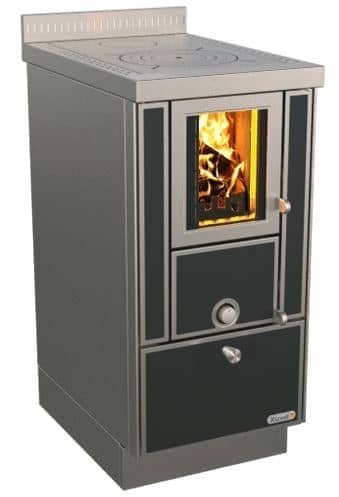 Kaminofen Thermorossi Ilaria Evo (Höhe 97 cm) Maiolica bordeaux mit Kochplatte für Notfälle im Top Deal