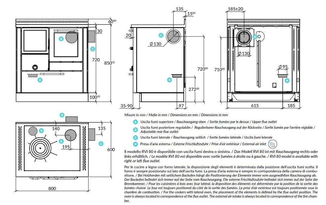 Rizzoli-Holzherde der Serie RVI wurden eigens für eine max. Einbau-Sicherheit zwischen den Möbeln entwickelt. Mit dem Surround Head System sind keine weiteren Hitzeschutz-Vorrichtungen nötig. Die neue Rizzoli-Technologie und der geräumige, beleuchtete Backofen ermöglichen grenzenlose Kochmöglichkeiten. Holzherde der Serie RVI sind mit einer großen Brennkammer ausgestattet. Die spezielle Feuerraumtür mit dreifach verglastem, selbstreinigendem Sichtfenster garantiert eine ausgezeichnete Sicht aufs Feuer. Zur Auswahl stehen zahlreiche Ausführungs- und Personalisierungsmöglichkeiten.