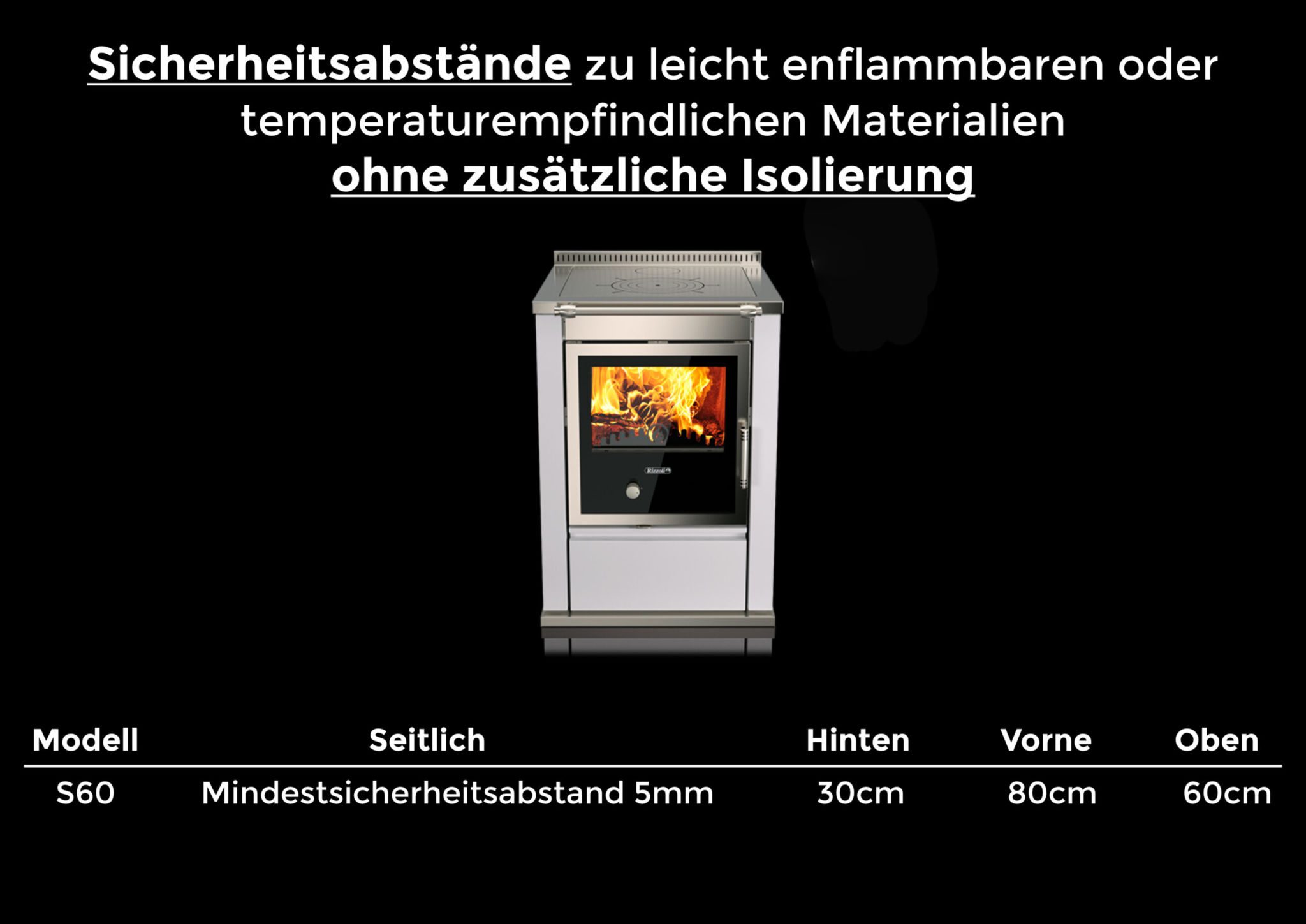 Halten Sie Rücksprache mit dem Schornsteinfeger Ihres Vertrauens – damit eine spätere Abnahme garantiert ist. Dieser kontrolliert vor dem Einbau der Feuerstelle Ihren Schornstein auf Verwendbarkeit. Beachten Sie grundsätzlich die Bedienungs- und Aufstellanleitungen des Ofens und wahren Sie die erforderlichen Sicherheitsabstände.