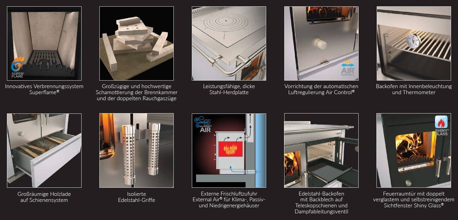 Die Serie S ist mit ihren klaren Linien und dank großer Auswahl an Farben und Ausführungen die ideale Wahl für jede Einrichtung, egal ob modern oder klassisch. Außerdem sind einige Modelle in Sonderausführungen mit Rundbogen erhältlich, der dem Herd einen Hauch Rustikalität verleiht. Holzherde der Serie S sind mit einer Feuerraumtür mit großem Sichtfenster ausgestattet, die eine angenehme Sicht aufs Feuer ermöglicht. Modelle dieser Serie können eingebaut oder freistehend installiert werden und sind mit oder ohne Backofen erhältlich.