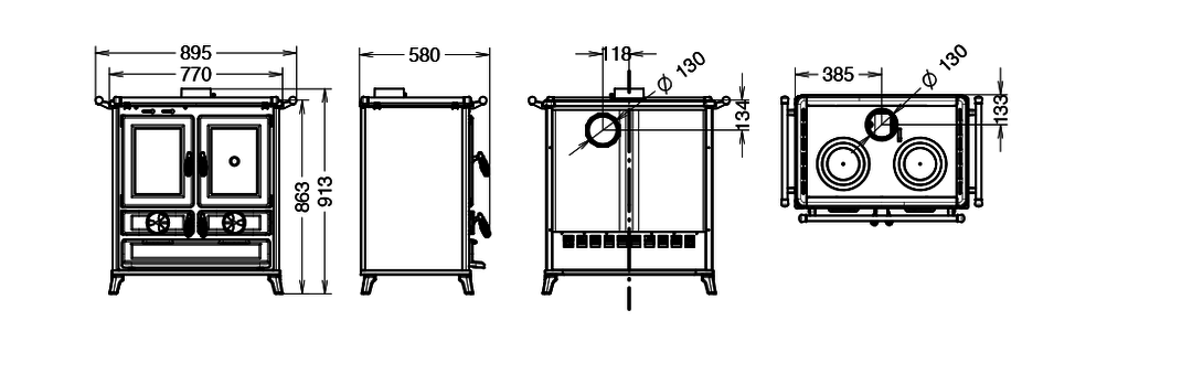 • Maße Feuerraum (L x H x T): 235 x 364 x 382  mm