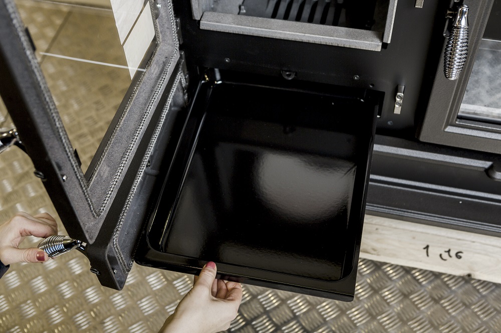 • Emaillierter Unterofen mit Specksteinboden komplett mit Auffangwanne