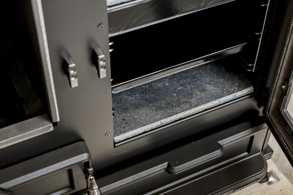 Eine einzige große Tür umschließt zwei unabhängige Öfen: Die Wärme wird nach Wunsch geregelt, der obere Ofen kann dank einer speziellen Rauchgasschleife höhere Temperaturen ausnutzen. Beide Öfen haben einen Specksteinboden und ein eigenes Thermometer. Wasser, Hefe und Mehl und ein bisschen Magie wird zu Hause gemacht. Drei scheinbar ganz einfache Zutaten ergeben etwas unglaublich Besonderes und Duftendes, das die ganze Familie vereint